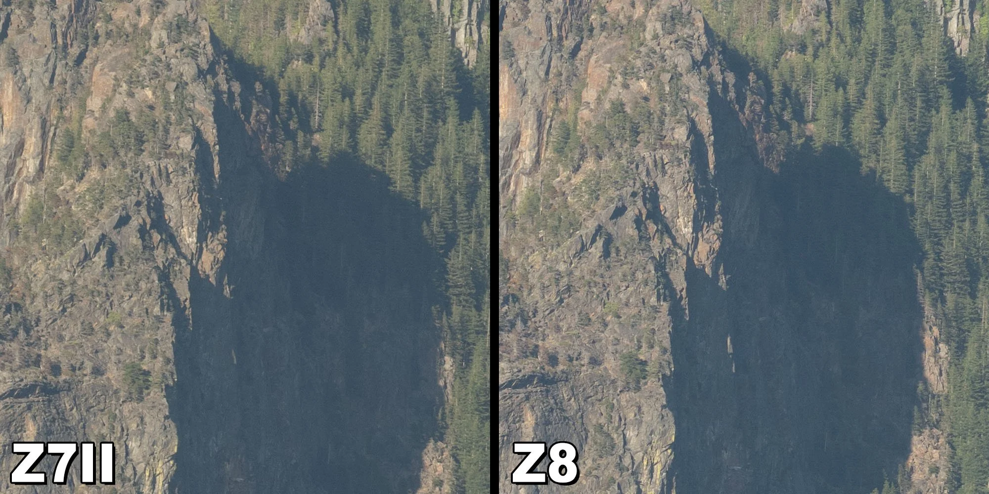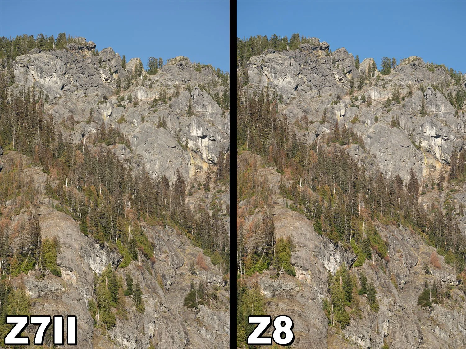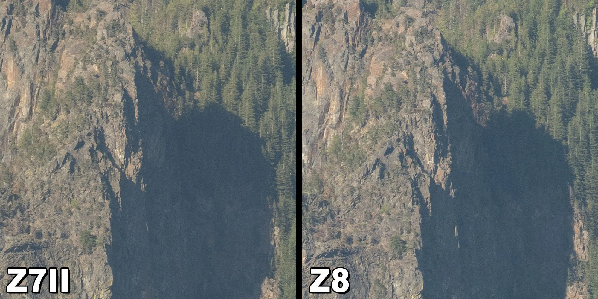 After comparing base ISO performance, high ISO noise, shadow recovery, and highlight flexibility, the conclusion is straightforward. For still image quality in landscape photography, the Nikon Z8 and Nikon Z7 II are effectively identical.